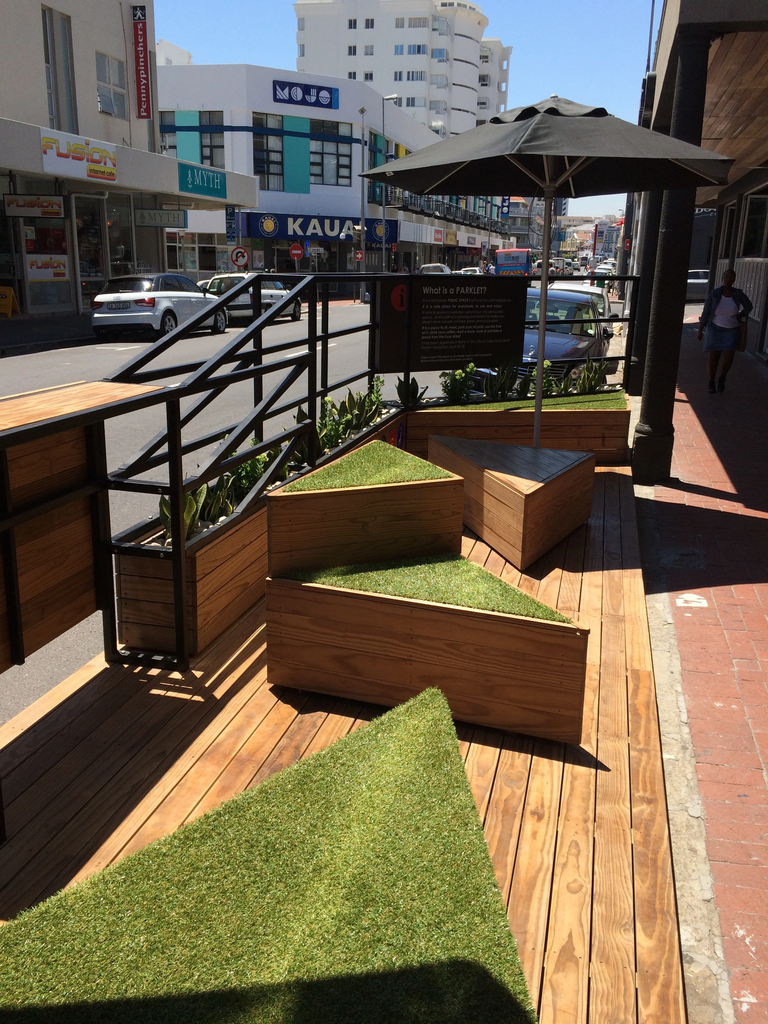 The result was a small outdoor space, with free wi-fi provided, that became a popular spot with locals, restaurant and office staff alike.